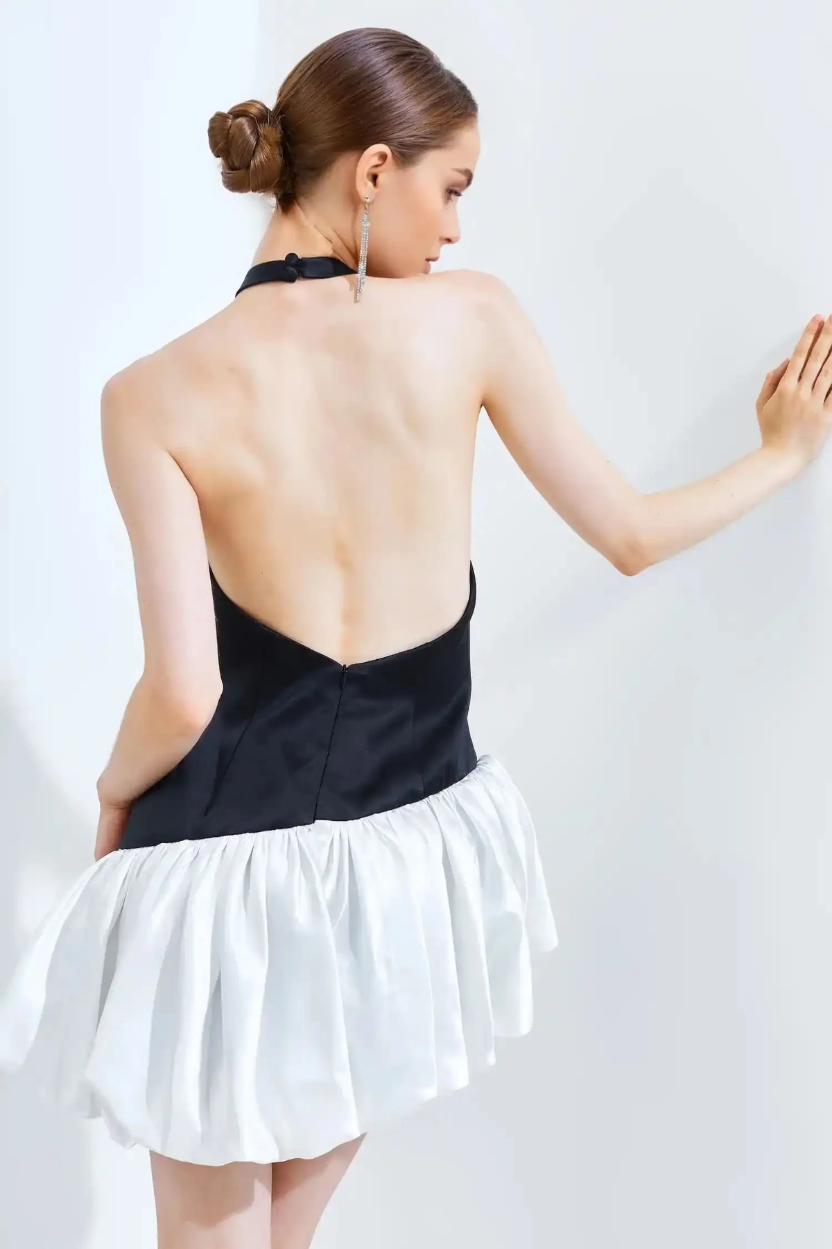 Elements: 3D Decoration, Asymmetric, Backless, Cutout, Patchwork, Ruched, Hook Closure