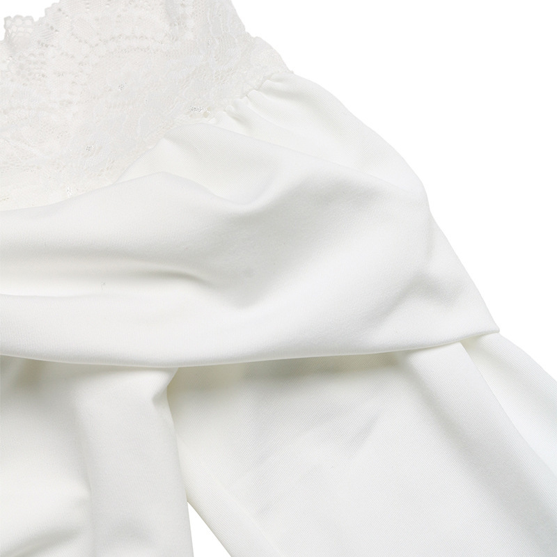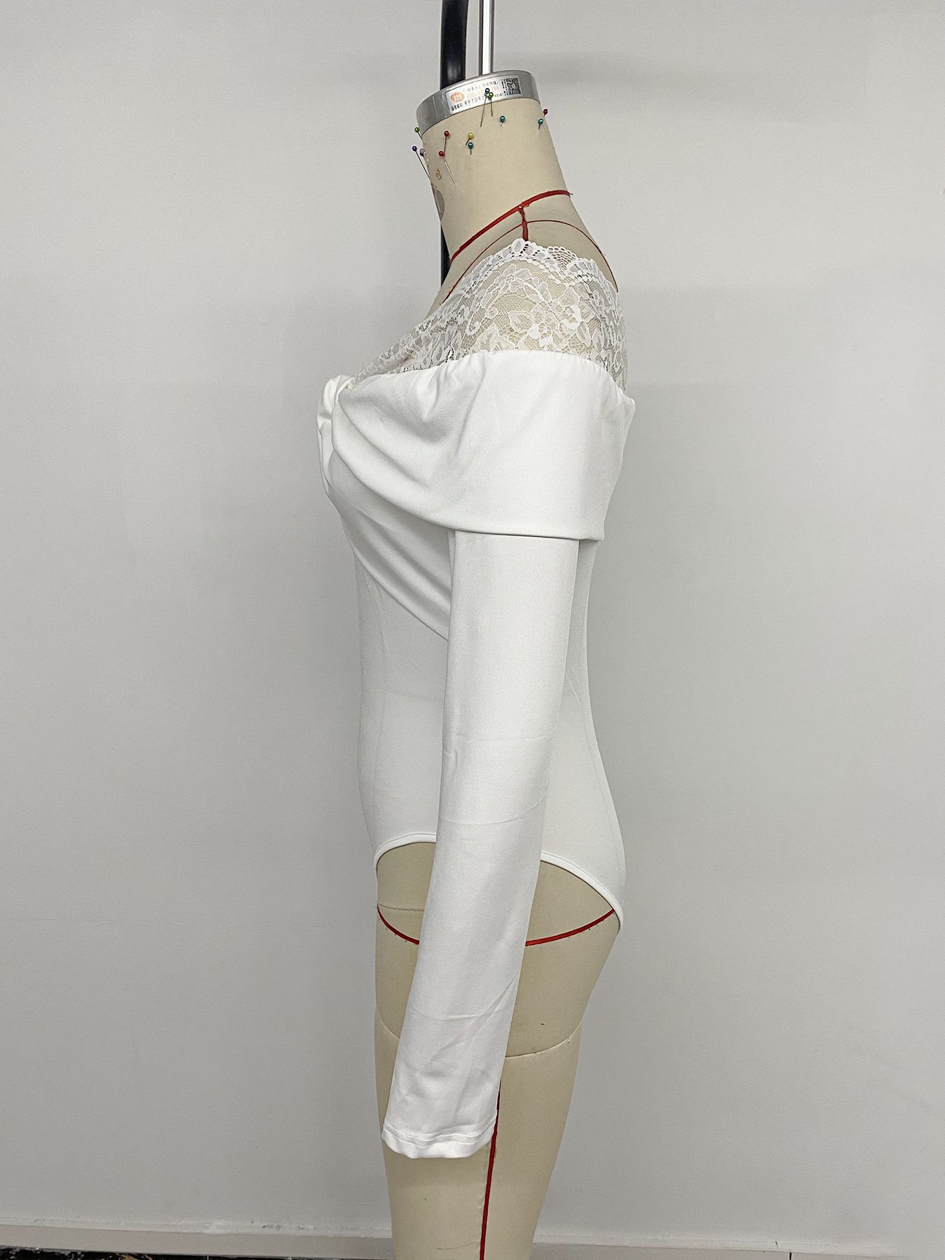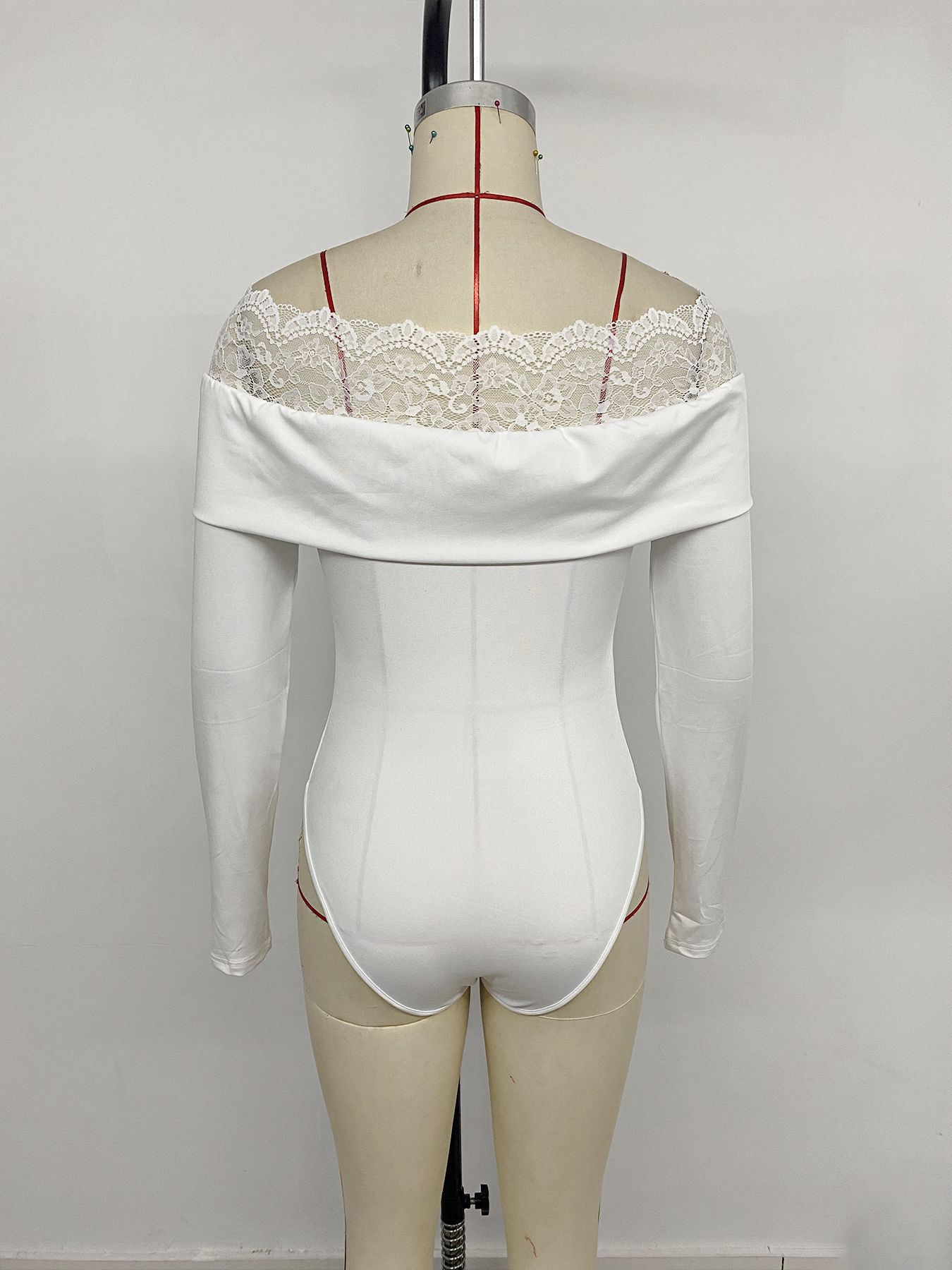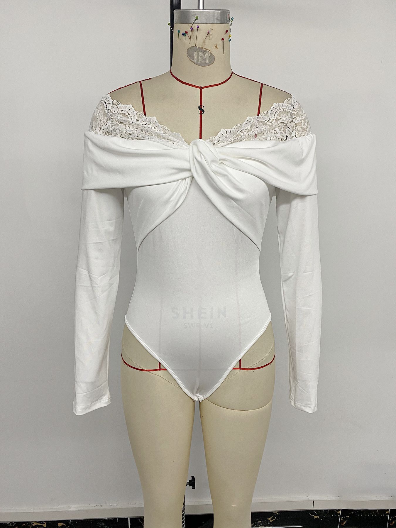 Elegant Lace Slim Top Patchwork Cold Shoulder White Long Sleeve Twist Knot Jumpsuit