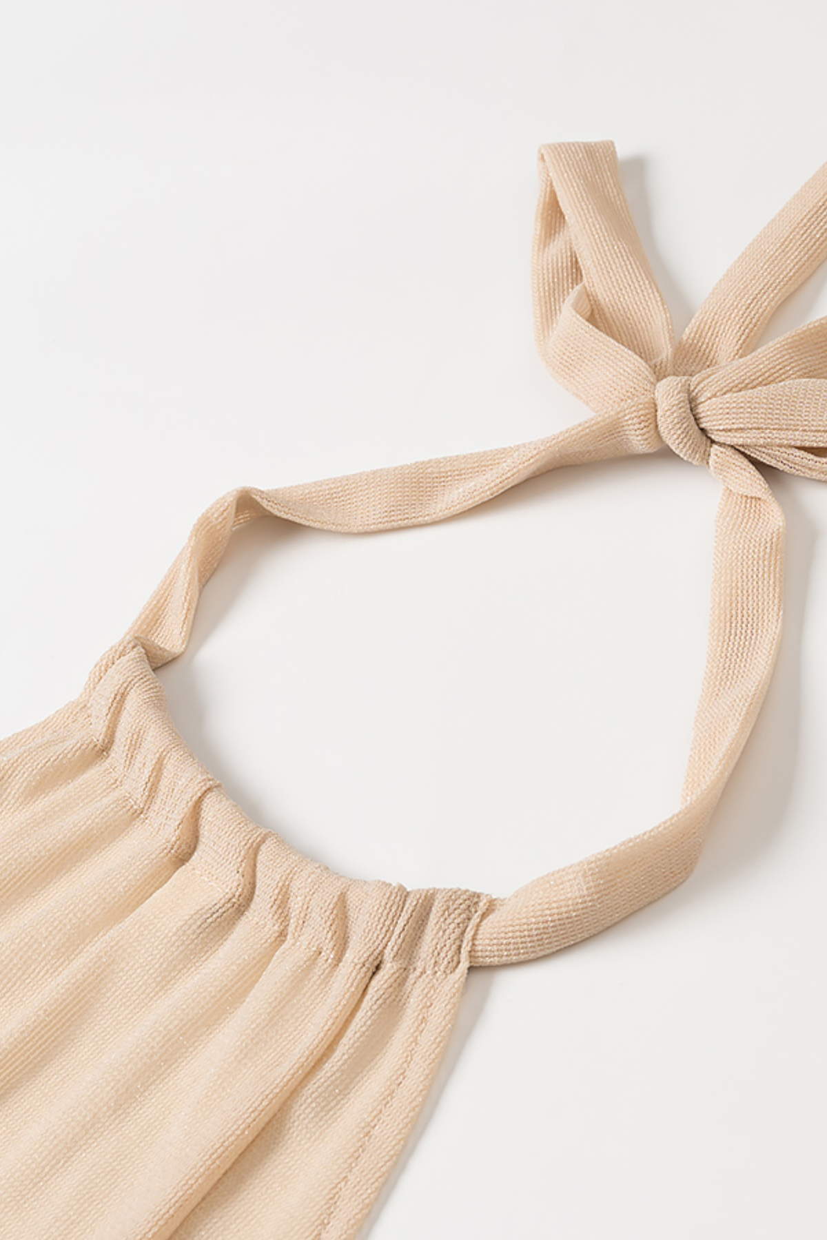 Designed for sun-soaked escapes, this boho-meets-sexy set features a sleek halter crop top with an adjustable tie-back and an open back silhouette. The low-rise maxi skirt flows effortlessly with a thigh-high split, ruched detailing, and a flattering slim fit. Perfect for beach vacations, tropical dinners, or summer nights out.