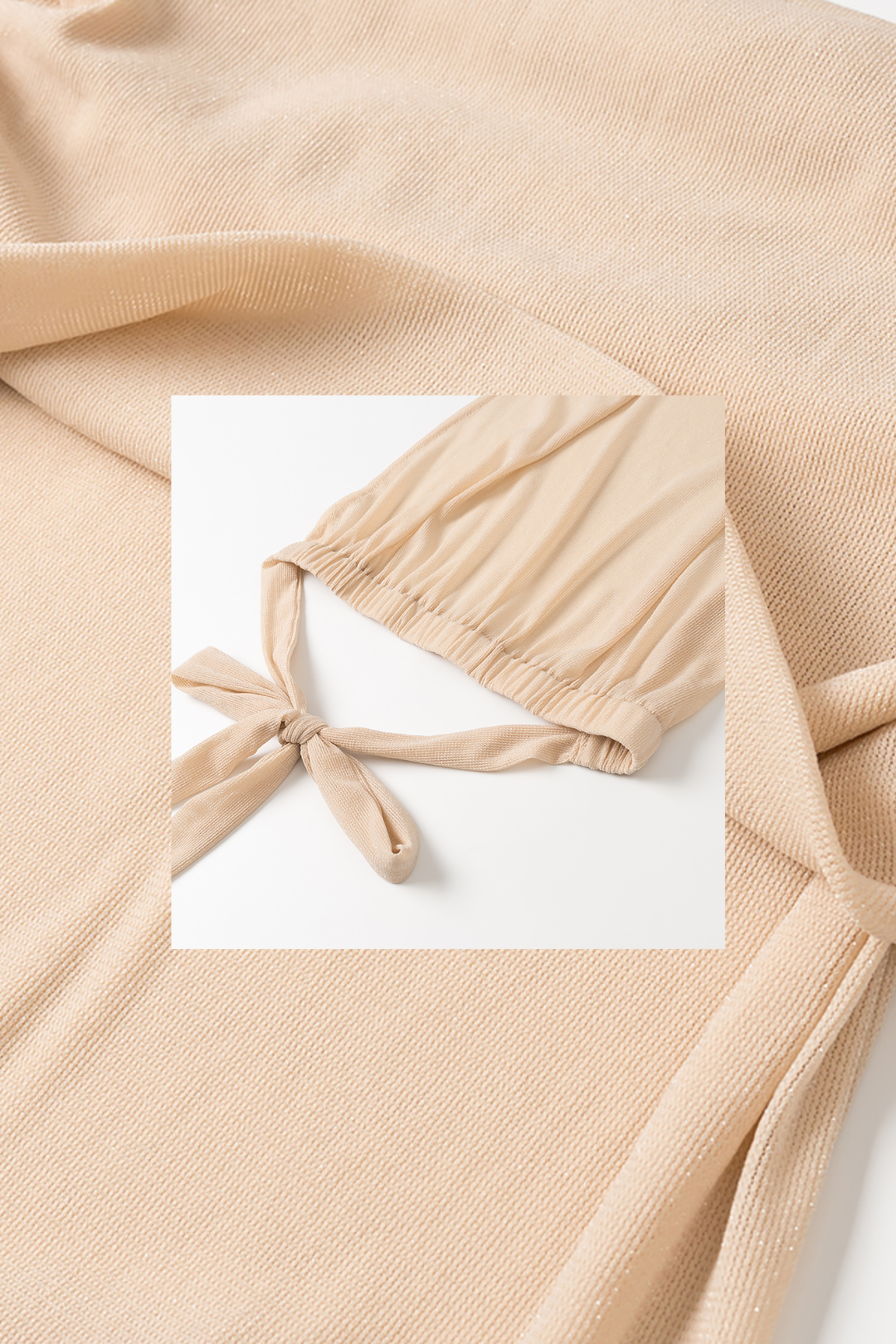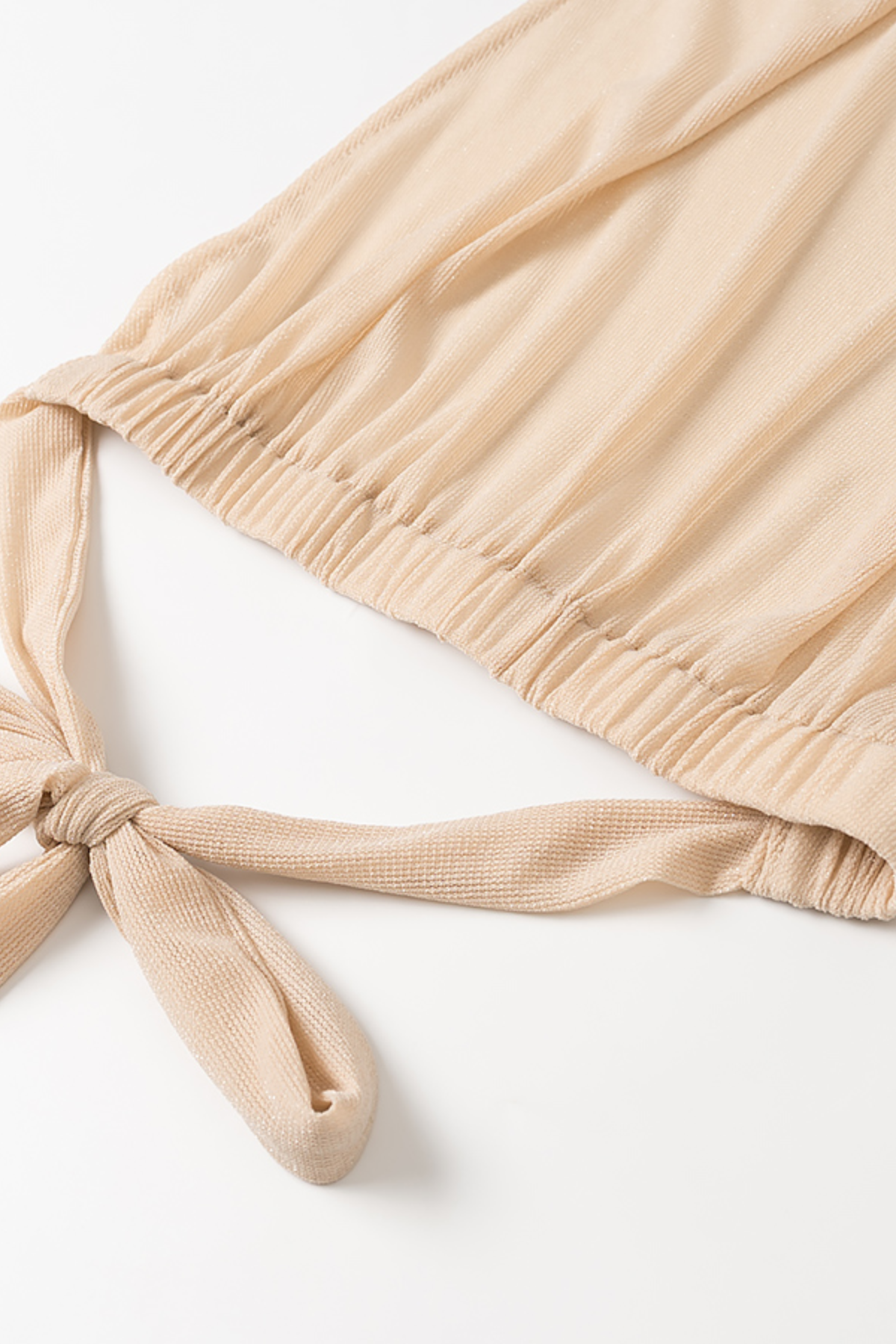 Closure: Self-tie halter top; concealed side zipper on skirt